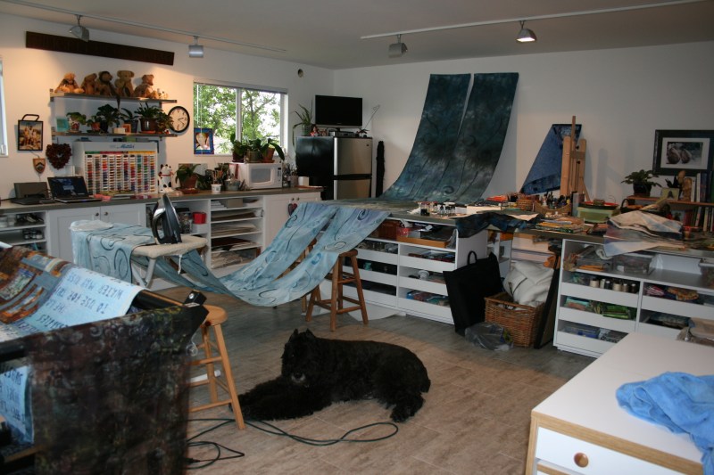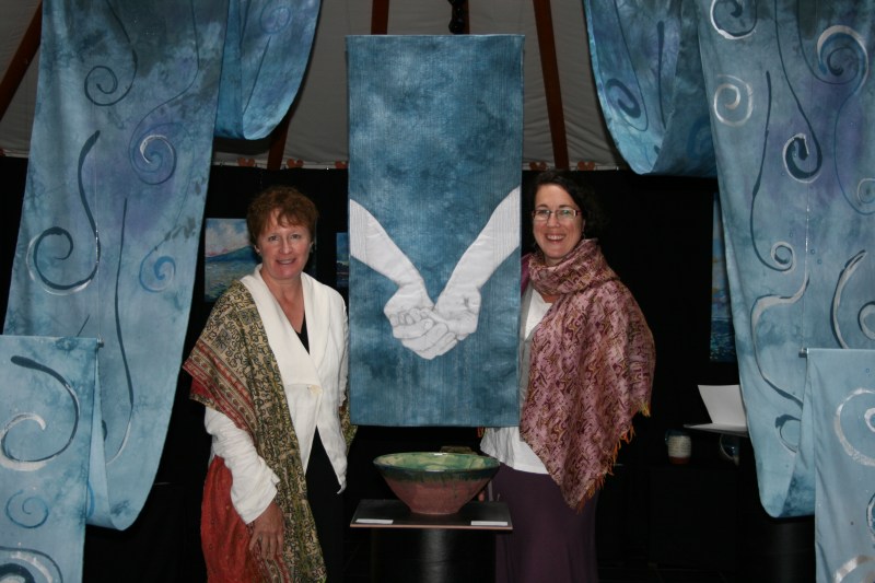 We were able to have the doors and windows open all day even in the rain! it was exciting to see our installation set up in the center of the yurt. Those 7 meter banners that seemed soooo very long in my studio, were just right in the gallery.