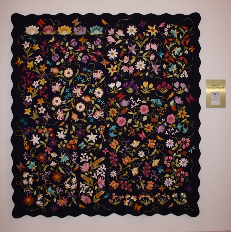 This absolutely stunning traditional quilt was the winner in that category. It is hand embroidered, hand applique and hand quilted. And best of all made by Canadian! Deborah Kemball of Quebec.