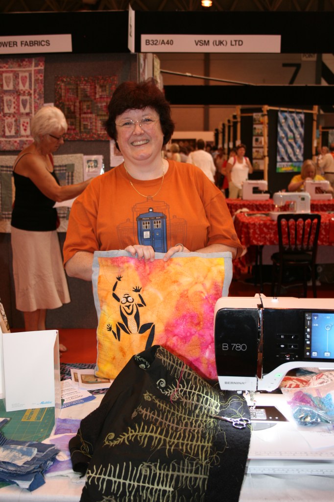 One of the highlights for me was meeting Lis from Lancashire, she attended one of my workshops and then dropped by the stand the next day for a chat. It turns out she had made a bag using one of my designs! It was published about 2005 in British Patchwork and Quilting magazine. Here’s Lis with her version of Leap Frog and her wonderful bag.